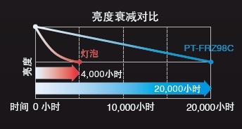 采用持久的雙模組激光模塊,無燈泡需要更換,圖像色彩和亮度呈逐步線性衰減。減少了維護帶來的麻煩,可持久保持高畫質(zhì)。