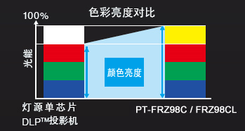 相比其它投影機,Quartet Color Harmonizer(四段色輪)可實現(xiàn)更寬的色域,能夠在屏幕上真實再現(xiàn)白色。一些傳統(tǒng)的投影機不能實現(xiàn)理想的白平衡,圖像色調(diào)偏綠。使用松下PT-FRZ98C/FRZ98CL的SOLID SHINE激光投影機就不會出現(xiàn)這種情況。
