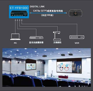 基于HDBaseTM協(xié)議,DIGITAL LINK可通過一根CAT5e(STP)或更高型號網(wǎng)線,傳輸非壓縮全高清視頻和控制信號長達100米。使用選配件高清數(shù)字傳輸盒,可使大型場館內(nèi)投影機的安裝更為簡便,同時降低使用成本,提高可靠性。